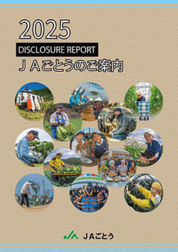 JAごとうは、情報開示を通じて経営の透明性を高めるとともに、当JAに対するご理解を一層深めていただくために、当JAの主な事業の内容や組織概要、経営の内容などについて、利用者のためにわかりやすくまとめたディスクロージャー誌 「JAごとうのご案内」を作成いたしました。